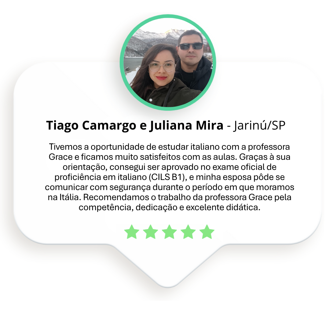 Aprenda com Grace Ivo, professora que viveu 13 anos na Itália e tem 15+ anos de experiência ensinando o idioma com paixão.